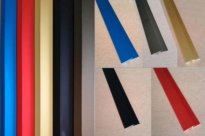 Exklusive Farb-Eloxal-Oberfläche für eine "ganz besondere Einbausituation" Einsatzmöglichkeiten z.B. in Hotels, eingebunden Fluchtweg - Kennzeichnungen. Länge der farbeloxierten Bodenschwellen zur Zeit 1.000 mm. Auf Anfrage auch länger.